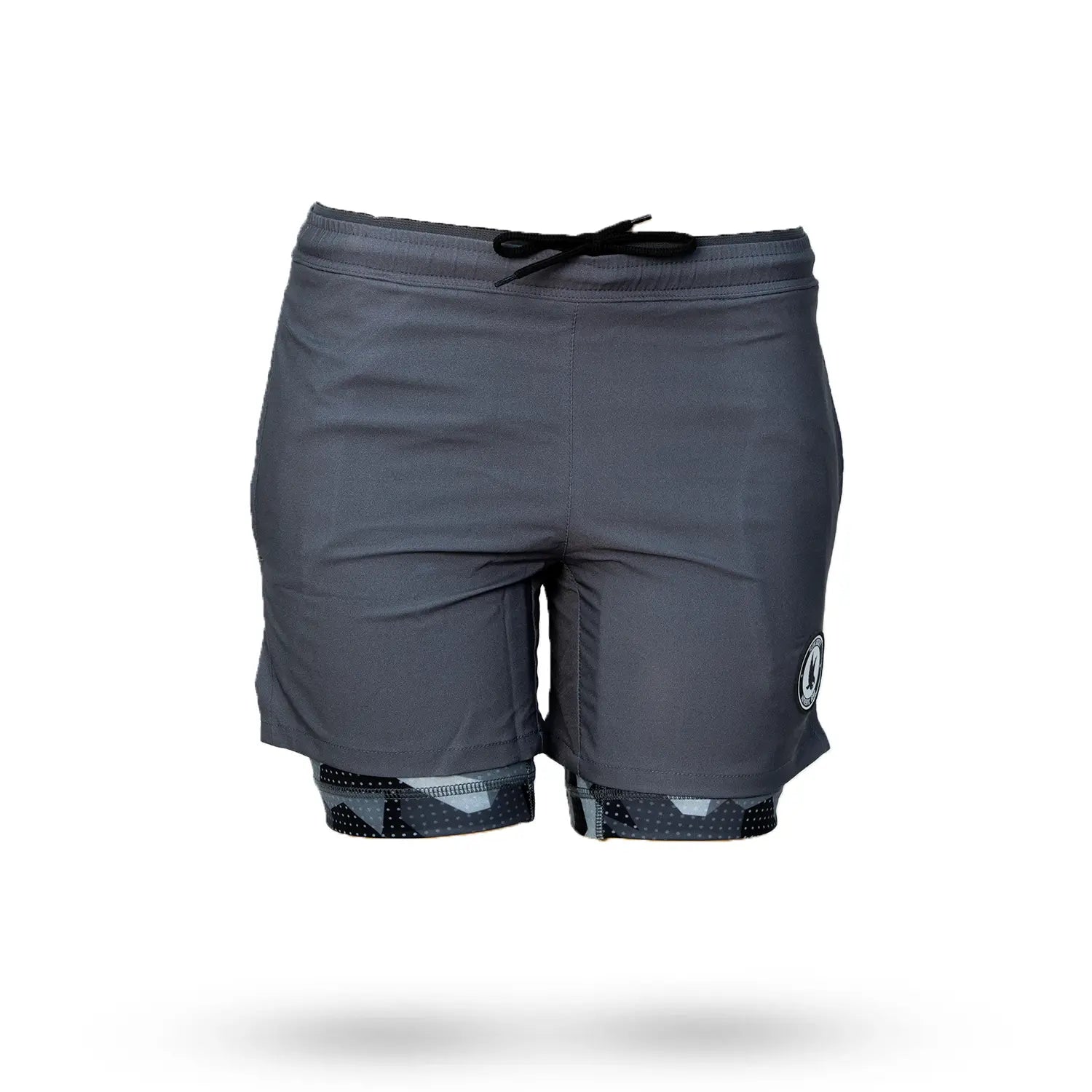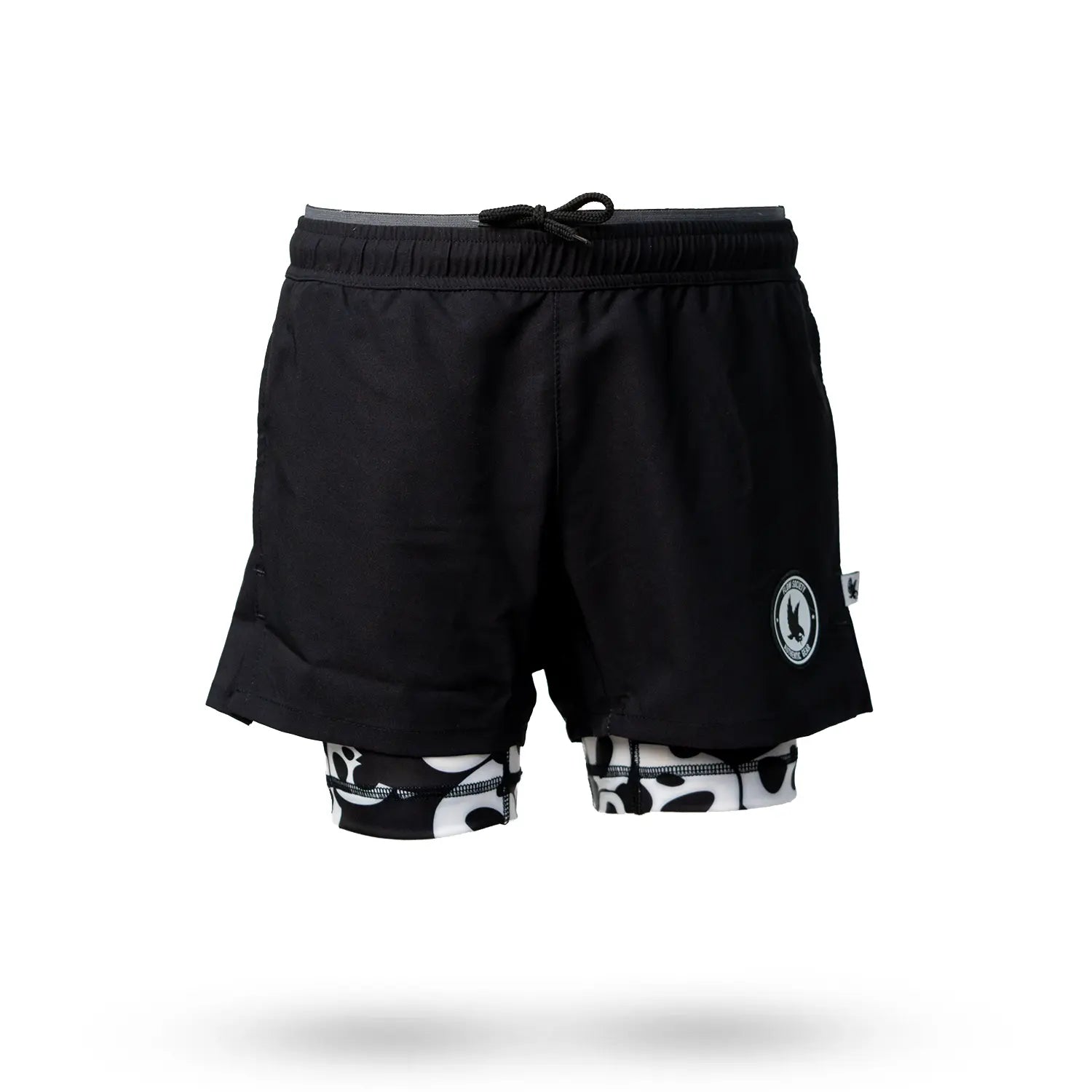 Mens 2-1 Compression Solid Black Panda 7" Shorts
