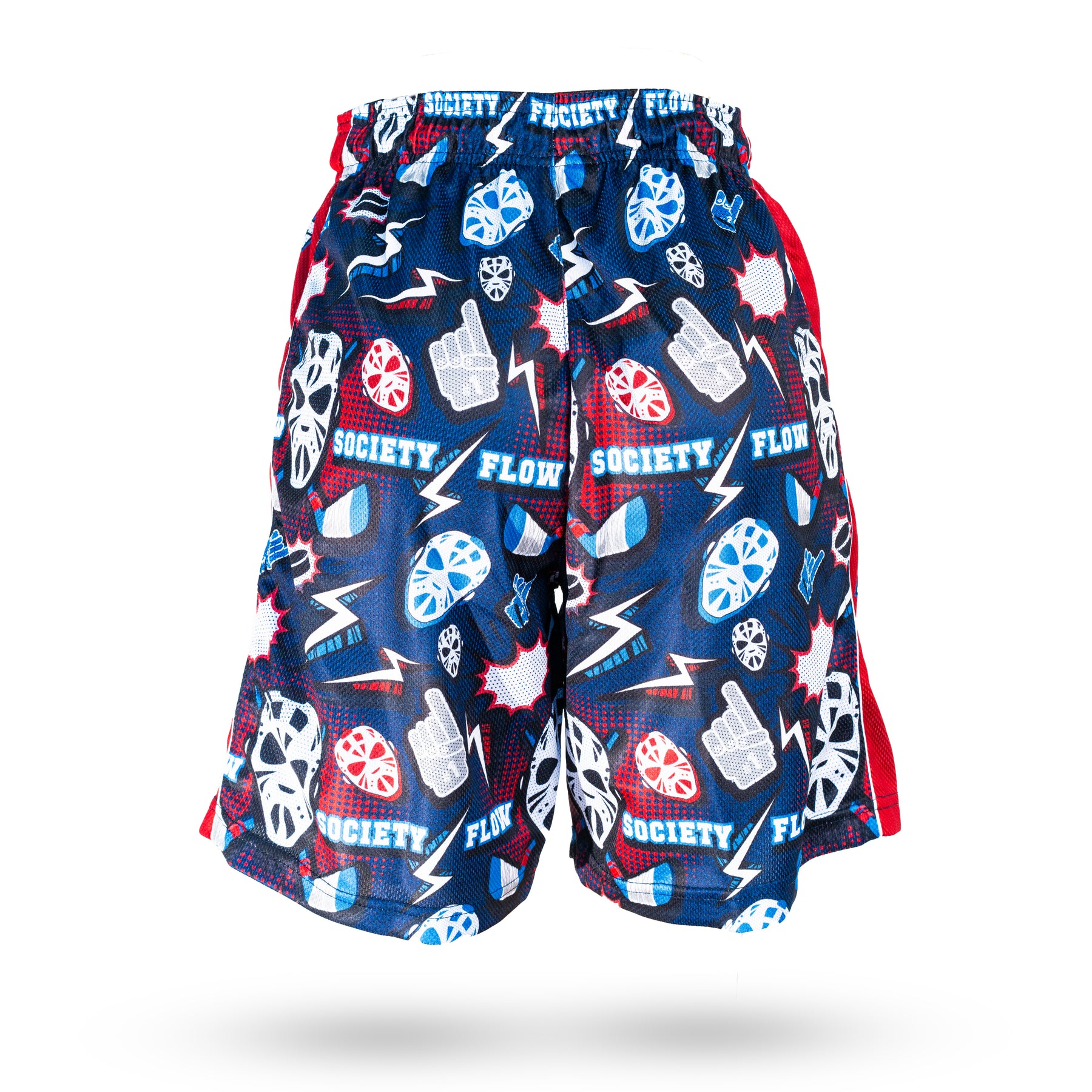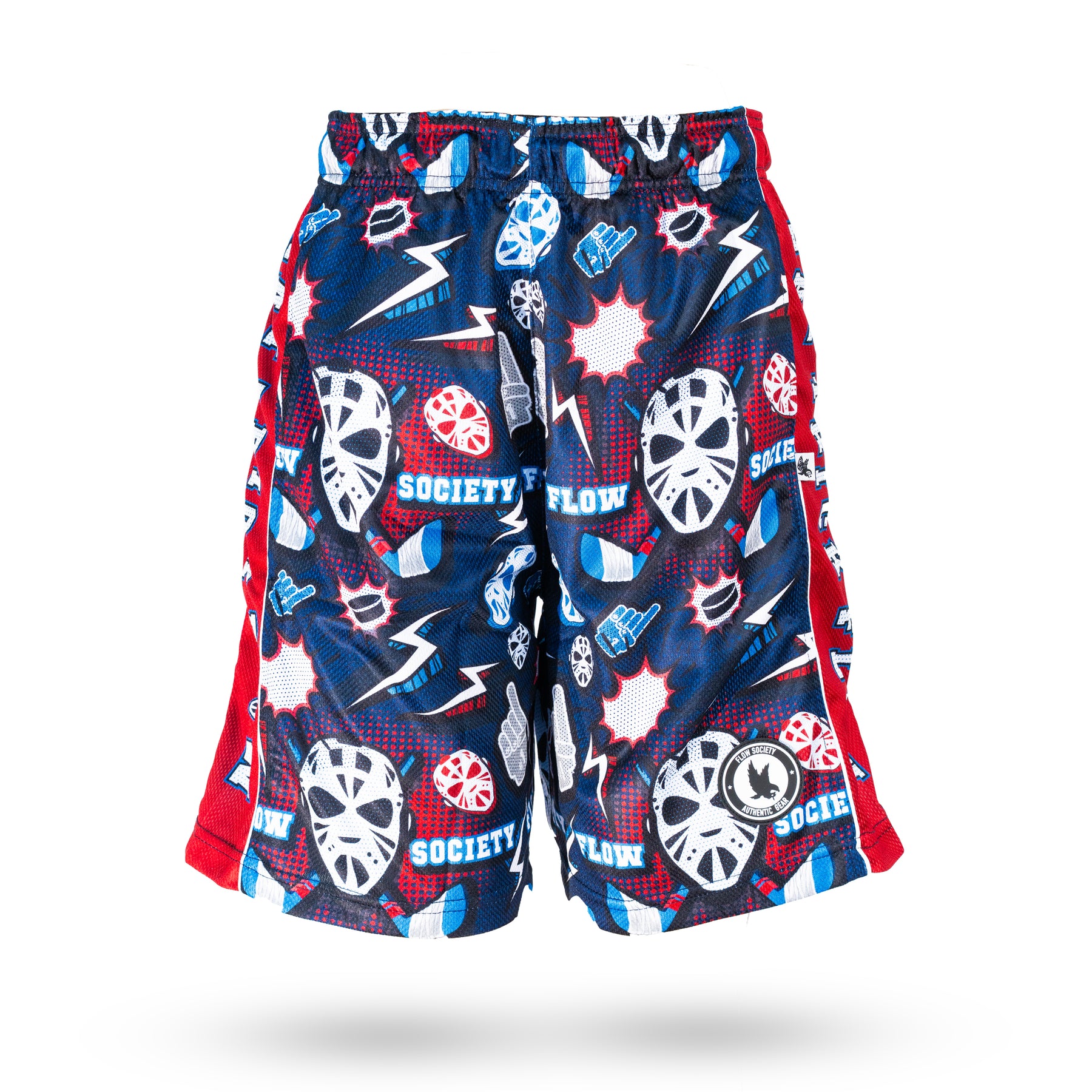 Fire and Ice! That's what you take on the ring! The Hockey Ring!100% breathable poly mesh fabric was designed with the total athlete in mind. This short features two side pockets and an elastic waistband for the ultimate in comfort and design.  Our XXS is Certified Flow toddler! Great for ages 2-4. See our size chart for more details